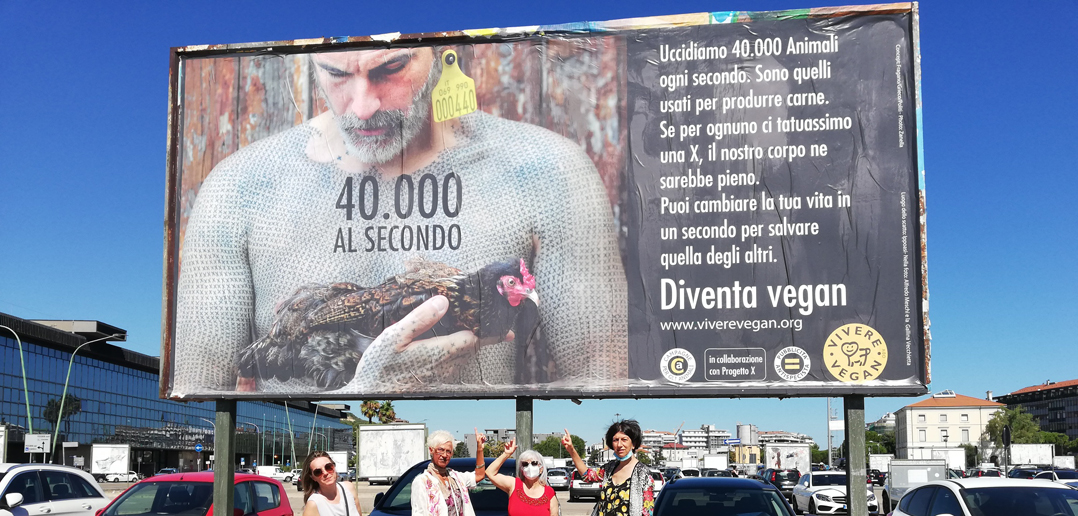 Continuano le affissioni dei grandi manifesti animalisti della campagna “Comunichiamolo 2020” curata da Progetto Vivere Vegan per diffondere il messaggio animalista.