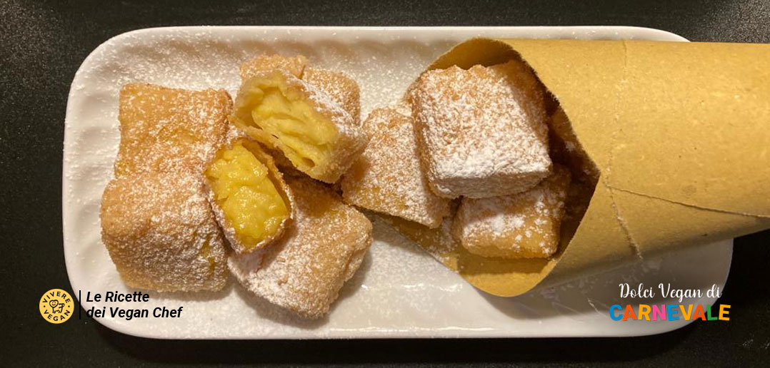 Una ricetta tipica di varie regioni italiane, servita come dolce o accompagnamento a piatti salati. Perfetta per Carnevale, anche come cibo da strada. La proponiamo qui in una versione vegan: una crema pasticcera, fatta rassodare e poi impanata e fritta. Bocconcini croccanti fuori e morbidi dentro, profumati e irresistibili.