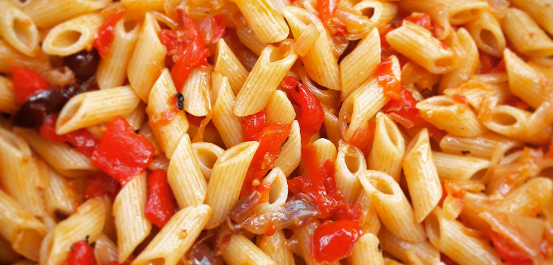 - Pasta con peperoni, datterini e olive.