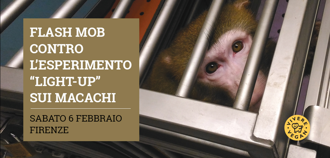 Come Associazione Progetto Vivere Vegan organizziamo sabato 6 febbraio 2021 in Piazza Santa Maria Novella, a Firenze, a partire dalle 15:00 fino alle 16:30, una mobilitazione contro l’accecamento di 6 macachi, nell’ambito della sperimentazione del progetto Light-Up.