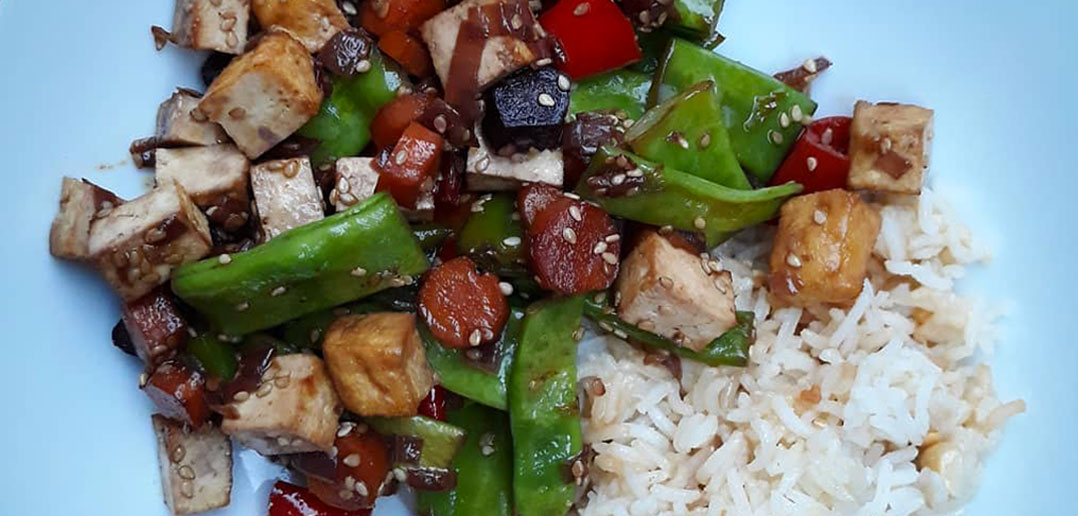 Aggiungete alla fine il tofu scolato e il sesamo e fate saltare a fiamma allegra.