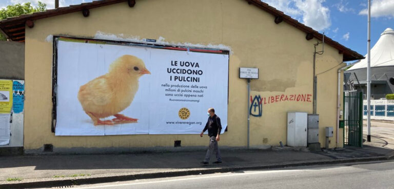 “LE UOVA UCCIDONO I PULCINI” così recita la frase sui nostri manifesti che in questi giorni abbiamo affisso a FIRENZE in 6 postazioni. E poi continua: “nella produzione delle uova milioni di pulcini maschi sono uccisi appena nati”. Questa è una realtà che ancora pochi conoscono, perché l’industria che opera in questo settore non ne parla volentieri, tanto meno nelle pubblicità. Chi vorrebbe la morte di un pulcino?