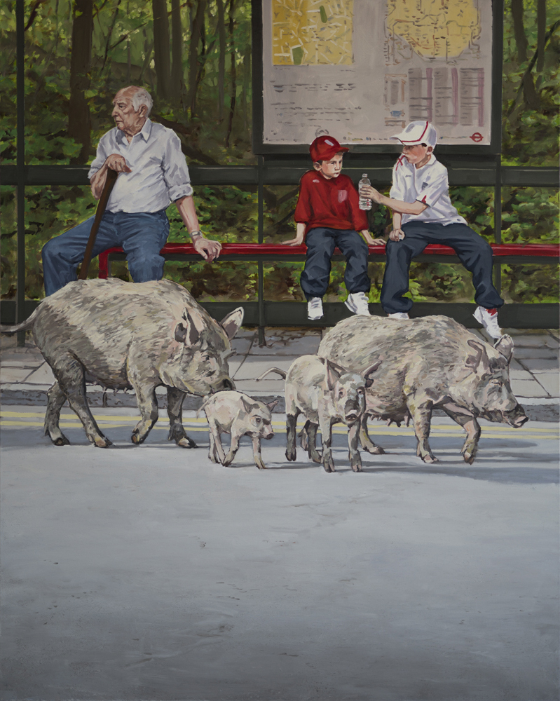 Nella sua raccolta Urban Space (Spazio Urbano) troviamo vari animali rappresentati in spazi urbani dove sarebbe impensabile trovarli in realtà. Queste immagini quasi utopiche vogliono trasmettere, invece, un messaggio alquanto sottile. Trovare una mucca e dei tacchini sul marciapiede, dei maiali seduti vicino ad una fontana, o una famiglia di cinghiali alla fermata dell’autobus sono situazioni quasi surreali da vivere, ma bisognerebbe domandarsi il perché di tale assurdità.