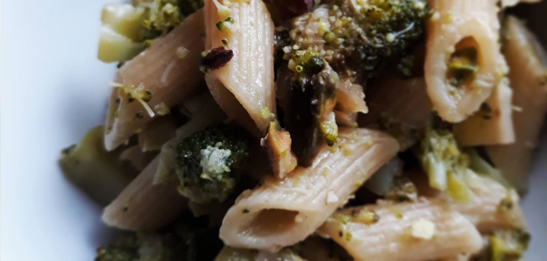 • Pasta di legumi con broccoli e granella di pistacchi;