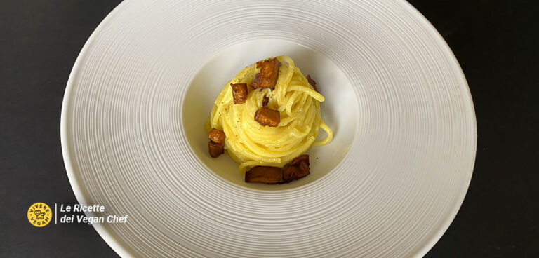 Oggi con il “Nido di spaghetti alla crema di tofu e ceci con seitan croccante” propongo un piatto in chiave vegetale che potrebbe ricordare molto un piatto della tradizione italiana ed in particolare di quella romana. Non menziono intenzionalmente di quale piatto sto parlando perché tempo fa su un post che avevo pubblicato sui social ricevetti delle critiche per aver “veganizzato”, soprattutto per quanto riguarda i nomi, alcune preparazioni culinarie.